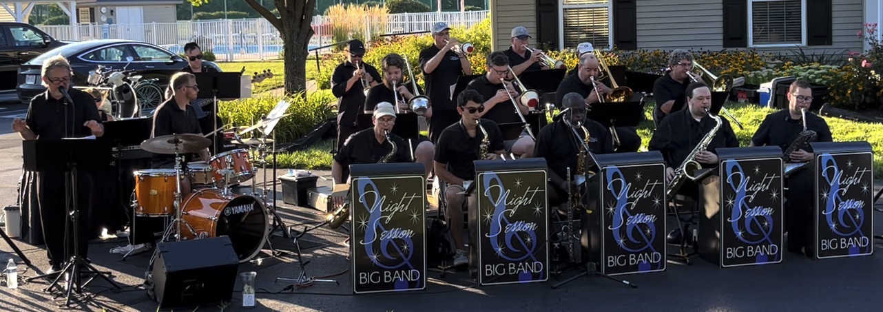 A full instrumentation big band, Night Session's professional musicians are committed to musical excellence. For more information about the band, click here. For more information about the musicians in Night Session, click here.